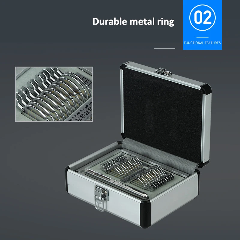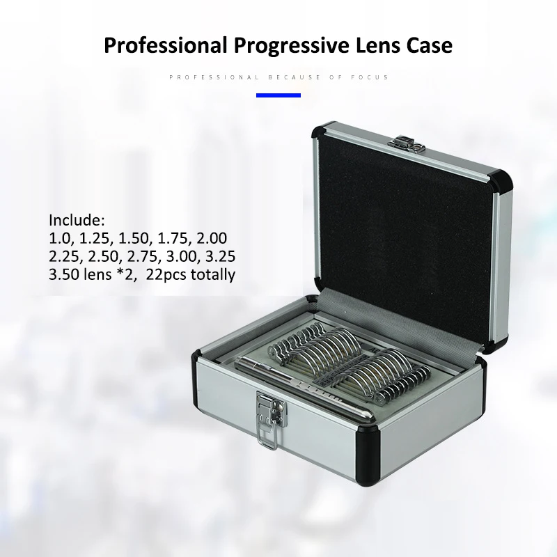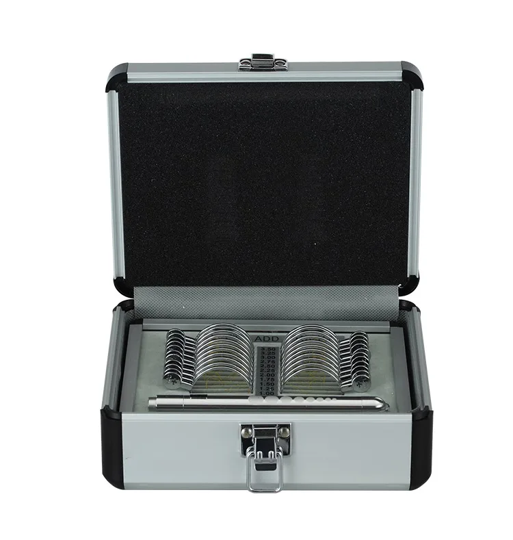 PL-22 Bộ 22 thiết bị quang học Bộ kính áp tròng thử nghiệm tiến triển Khay nhôm và hộp đựng nhãn khoa có đèn bút
